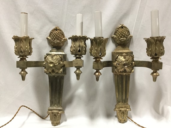 Each sconce of asymmetrical rocaille design with foliate-cast backplate issuing two foliate S and C- scrolling candle arms mounted throughout with stylized leaf-tip motifs. Drilled for electricity. These magnificent wall lights (or scones) achieve the miracle of not having a heavy design in spite of the number of lights, through the overall sumptuous design. The quality of the chasing is also the work of a superb craftsman and can be associated with Jacques Caffiéri (1678-1755). One of the leading fondeur-ciseleurs and sculptors to work for the French court under Louis XV, he delighted in creating the most ornate and complicated Rococo work. Jacques Caffiéri was one of the most important members of a prominent family of sculptors and metal workers. Of Italian decent, he was the son of the carver, sculptor and bronzier Philippe Caffiéri (1634-1716) who travelled from Naples at the request of Cardinal Mazarin and later was employed by the Crown at the Gobelins with an appointment as sculpteur de Roi. His tenth child Jacques Caffiéri was also gifted in this field and was elected to the Académie de Saint-Luc as a sculptor and thus created many of the original designs for proprietary models for his foundry. He was also received as a maître fondeur-ciseleur shortly before 1715 and from then until his death was established at rue des Canettes. As a nephew of Louis XV's chief designer and painter Charles Le Brun, Jacques Caffiéri soon found good connections. From 1736 onward he was constantly employed by the Crown, being appointed fondeur-ciseleur des Bâtiments du Roi. As such he produced works for many of the royal palaces and counted among his prestigious clientele Louis XV, Queen Marie Leczinska, Louis XV's mistress Madame de Pompidou as well as his daughter Madame Elizabeth. Hans Ottomeyer and Peter Pröschel, "Vergoldete Bronzen", 1986, Vol. I, p. 141, pl. 2.11.11 and 2.11.13, illustrating one of a pair of similar overt Rococo wall-lights of circa 1750, "The Wrightsman Collection", 1966, vol. II, pl. 217 A and B, illustrating one of another pair of similarly elaborate two-light wall-lights attributed to Jacques Caffiéri dated circa 1745-49 in the Wrightsman Collection, Metropolitan Museum of Art, New York.