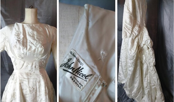 A beautiful hand tailored vintage wedding dress, made in the late 50's in England by John Nichol.