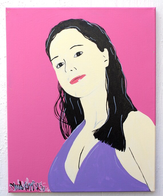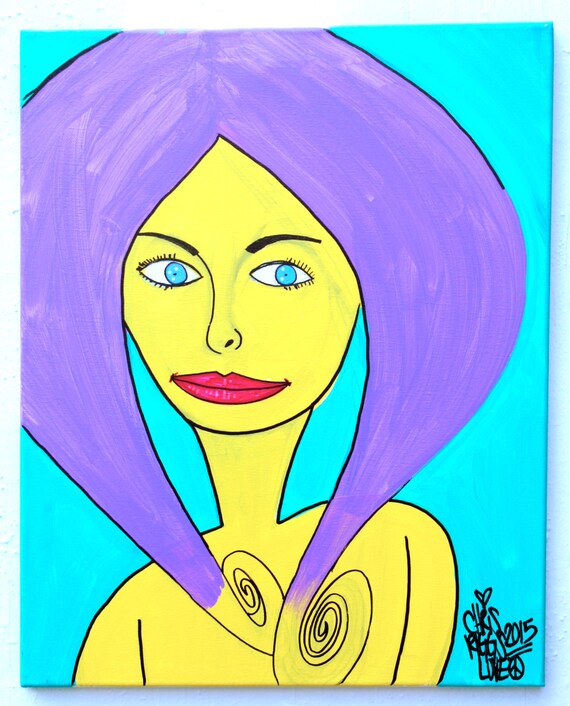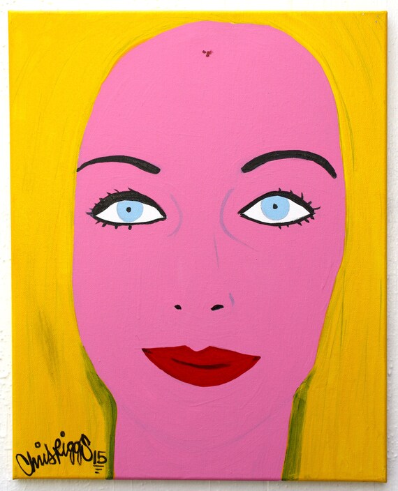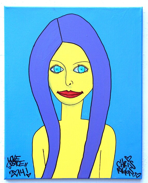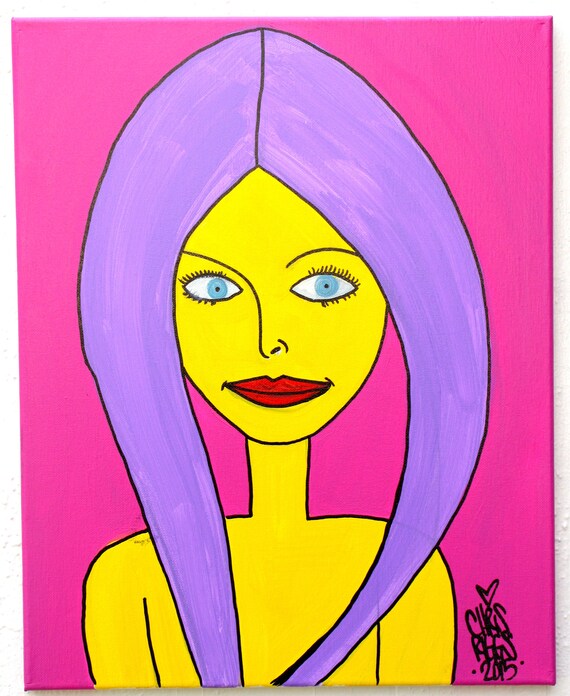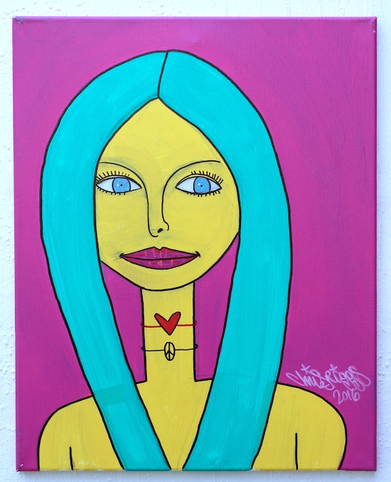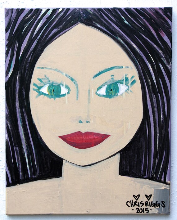 Free Shipping Portrait 20″ x 16″ woman contemporary art face modern canvas acrylic street art NYC colorful painting fine art by Chris Riggs by ChrisRiggsArtGallery