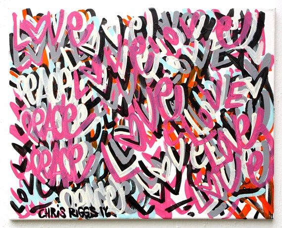 Free Shipping 20″ x 16″ Love Peace contemporary art graffiti modern canvas acrylic street art NYC colorful painting fine art by Chris Riggs by ChrisRiggsArtGallery