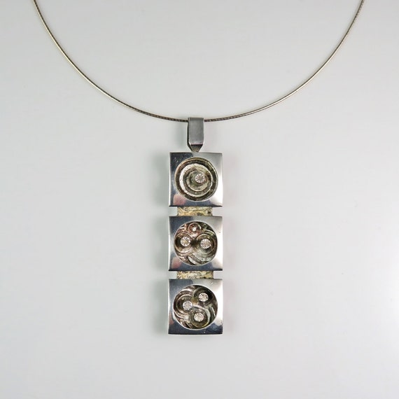 A fine sterling silver tigers eye and onyx inlaid hand made precious sterling silver collar circa 1980.