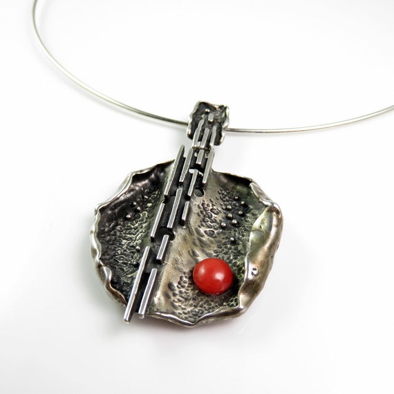 This unique collar has a gorgeous dramatic design of fine inlay which sits wide on the neck at the front. The silver surrounding the inlay has a high polish and looks completely luxurious.