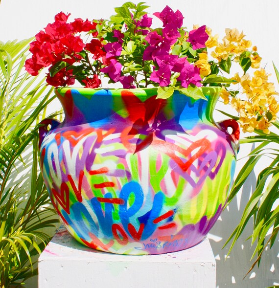 Free shipping. This clay pot is 21 inches wide x 16 inches tall. This is an original art work made by Chris Riggs for mayor. The pot is signed and dated it comes with a certificate of authenticity. Great for a home, office, gallery, museum, gift, or as an investment. His paintings and sculptures are in museums, galleries, and private collections in over 50 countries. Chris also does commission work, just ask.