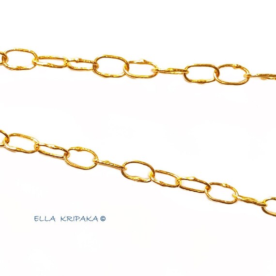 Fine Gold Chain Necklace Hammered Thick Parts Thick Clasp is made of solid yellow gold 22k. The wonderful fine gold chain necklace is handmade by me. I use ancient jewelry technology as in Ancient Rome to make the 22k gold necklace. I do the handmade technique for each item of my jewelry. Every item of my gold jewelry I begin with my own design drawings with pencils and watercolors. Then I do the technique of manual cutting, sawing and manual welding for gold. I do forging and hammering of jewelry for art texture of gold. The gold chain is forged with shiny hammered gold surfaces, oval links are designed with hammered thick parts for beauty in design. The gold chain is hand-polished for beautiful unique shiny hammered gold jewelry. Finished jewelry will be quite a bit different from the images because of handmade. All copyrights are reserved.